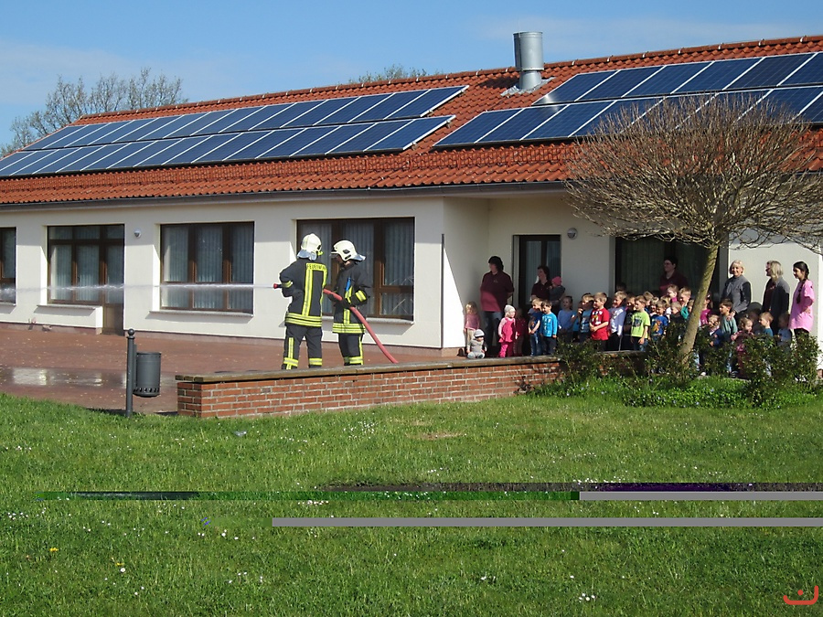 Jährliche Räumungsübung in der Kita mit der Feuerwehr.